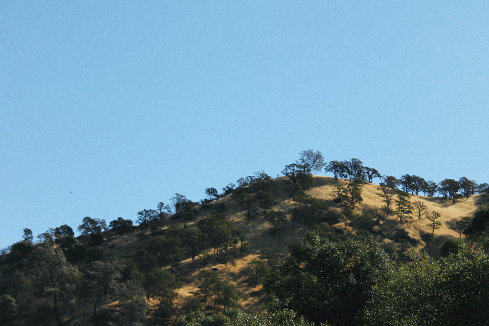 - Blue oaks dot this golden hill.